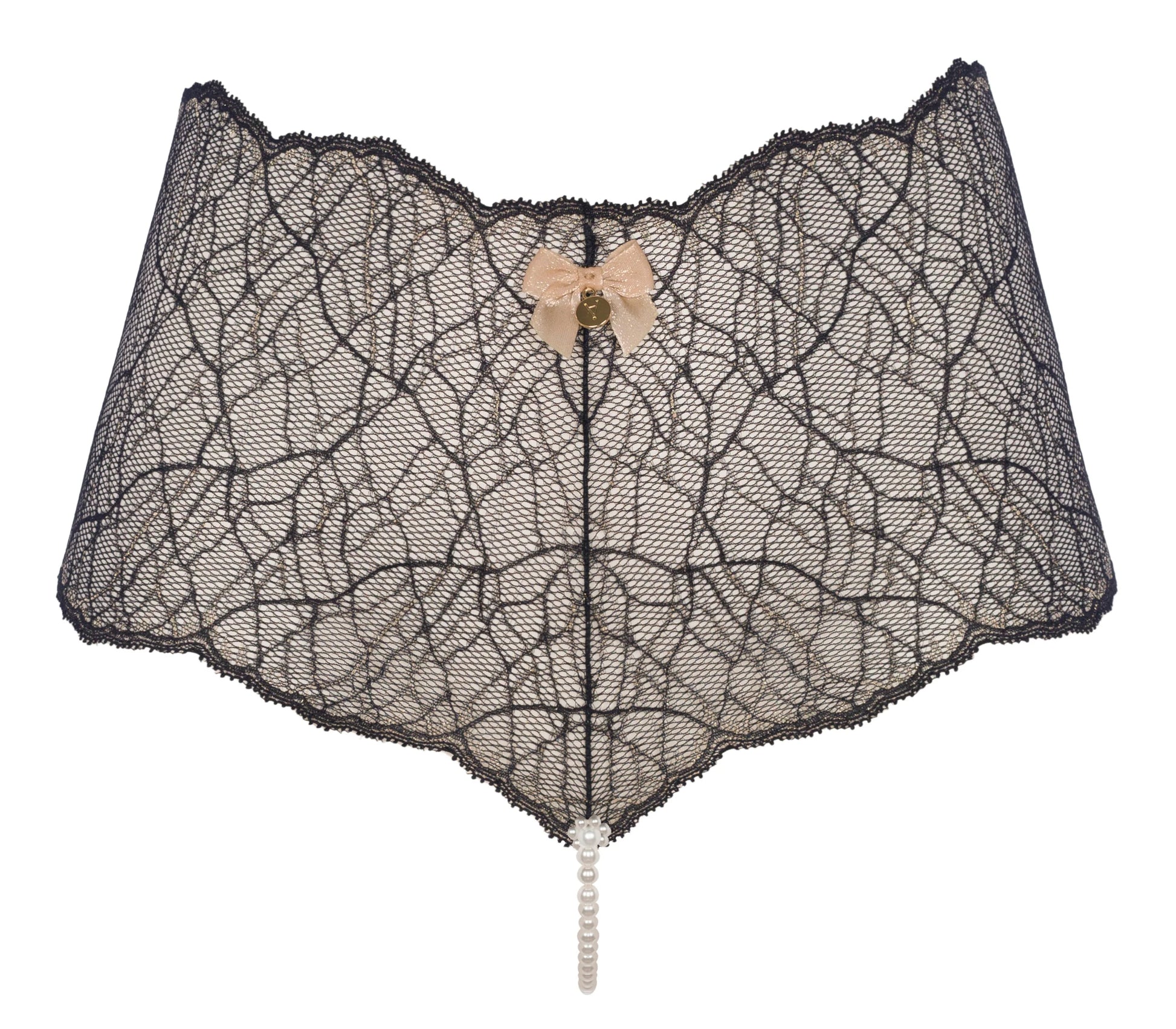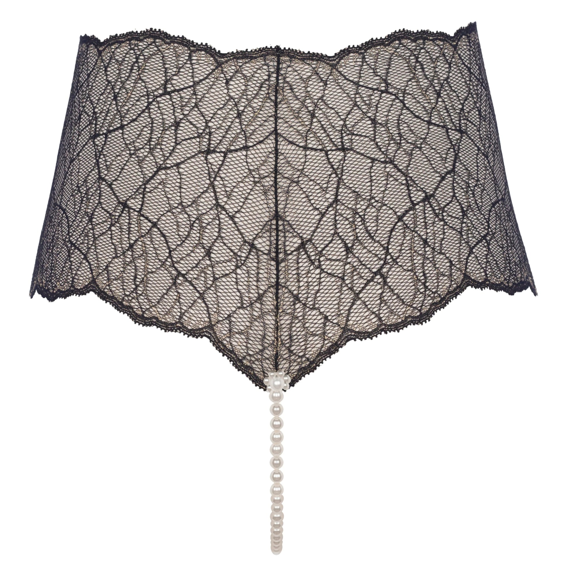 Experience the luxurious and contemporary design of BRACLI Sydney Panty, featuring a wider lace and lower cut. Let this exquisite garment, made of delicate Italian lace with a touch of gold lurex, evoke irresistible sensations.