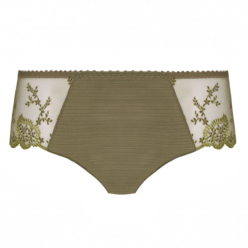 The Louisa Bracq Élise Shorty combines sophisticated design with practical comfort. Featuring a cotton-lined gusset and lightweight tulle construction, this style delivers seamless invisibility beneath clothing. The low-cut silhouette at the buttocks and wide edges create a flattering fit, while plant-based embroidery and delicate glittering details add refined elegance. Partial back coverage and retro-inspired transparency give this shorty its signature blend of understated luxury and playful allure.