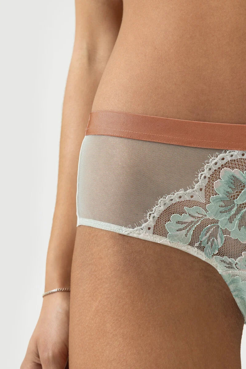 Feminine, modern, indispensable - the Cheeky hipster in Oatmilk from the Poetry Vogue series. Tonal contrasts give Poetry Vogue an elegant charm. The synergy of eyelash lace and suggestive details give the series its unmistakable character. Our hipster is Oeko-Tex® Standard 100 certified, which means that with this product you are actively choosing textiles that have been tested for harmful substances