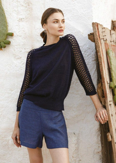 Crocheted style sweater perfect for the in-between season. Made from linen and cotton.