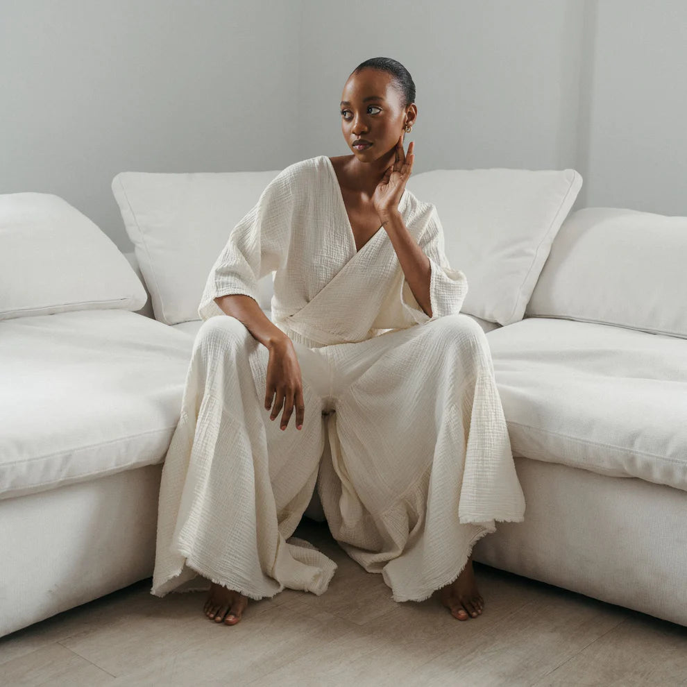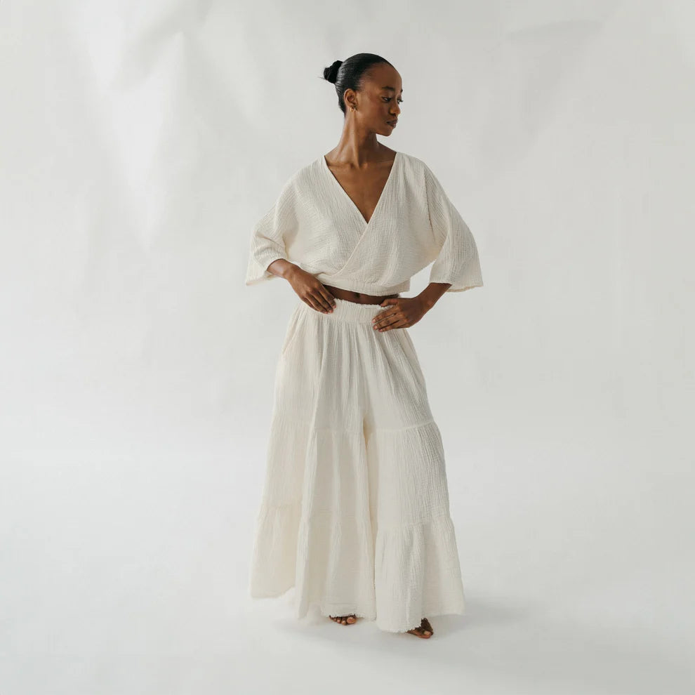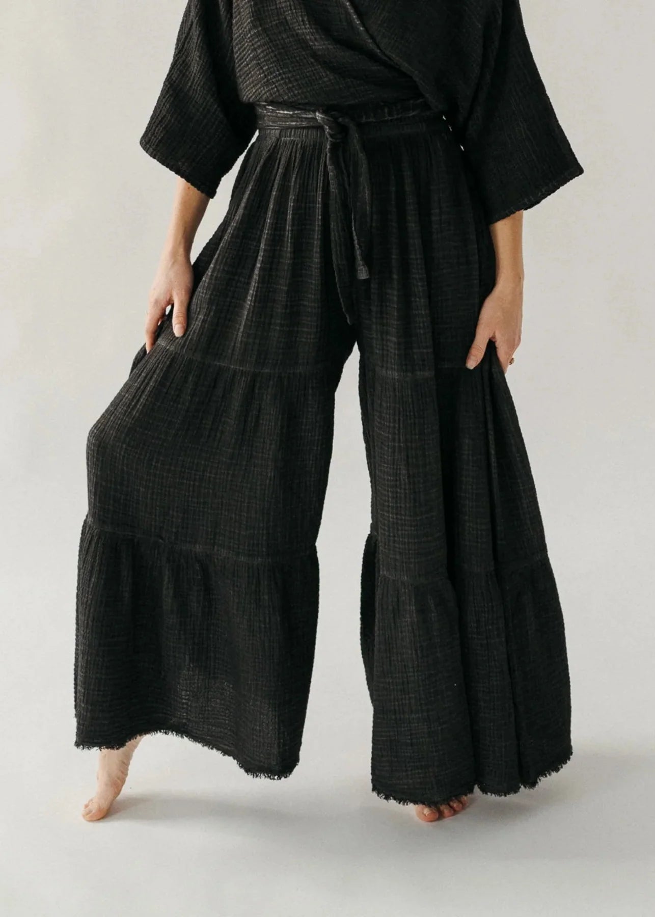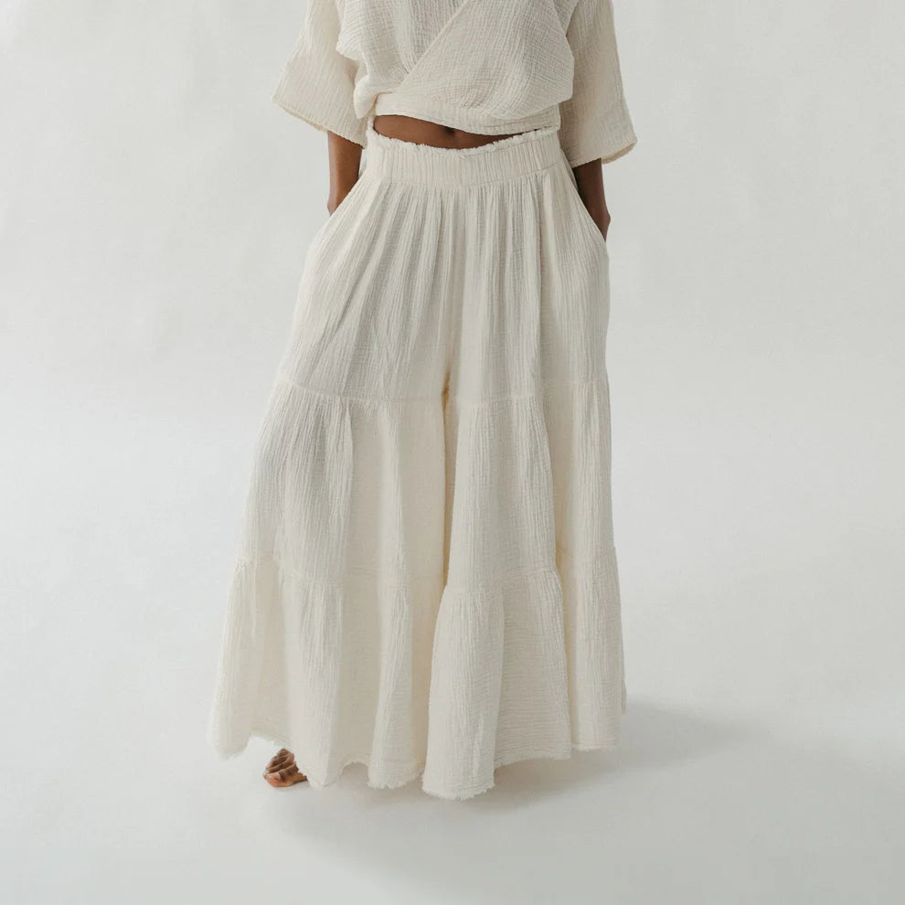 Elevate your capsule wardrobe with the graceful Crinkle Skirt Pants. Featuring a triple-tiered design, flowy silhouette these pants add a touch of natural, ethereal charm to everyday looks.