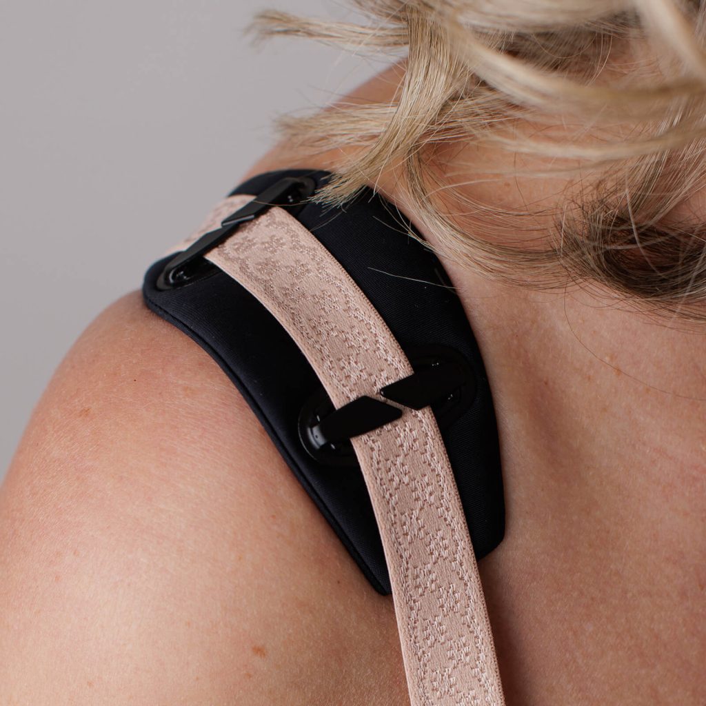 Strap padding for better comfort for all bra straps between 20-30 mm. The padding can be adjusted to the strap width using a click system.