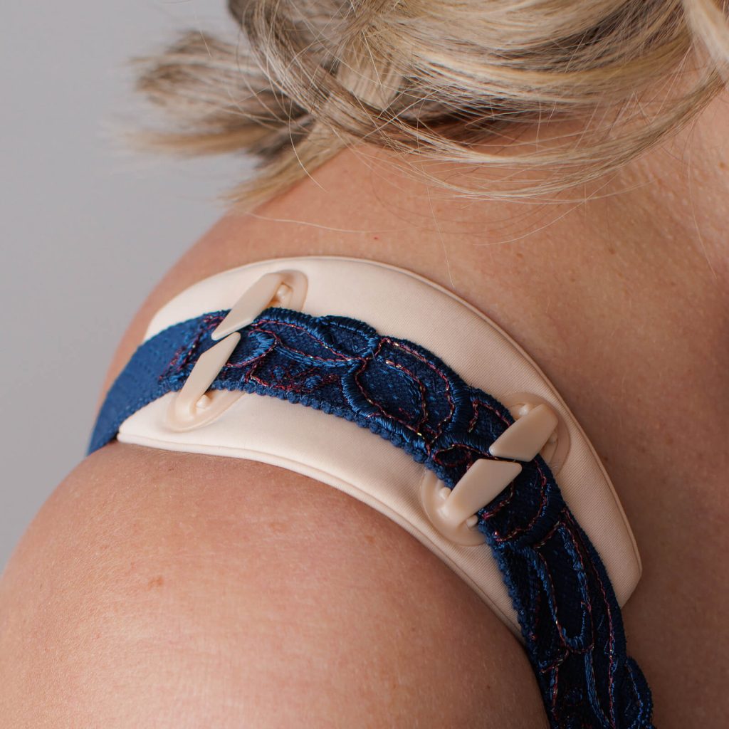 We often see customers who have deep grooves in their shoulders due to their cup size. This is often really painful. Depending on how wide the bra strap is, it can also cut in and put pressure on the nerves in the shoulder. Attach our luxurious strap pads to your favorite bra to ease the pressure.