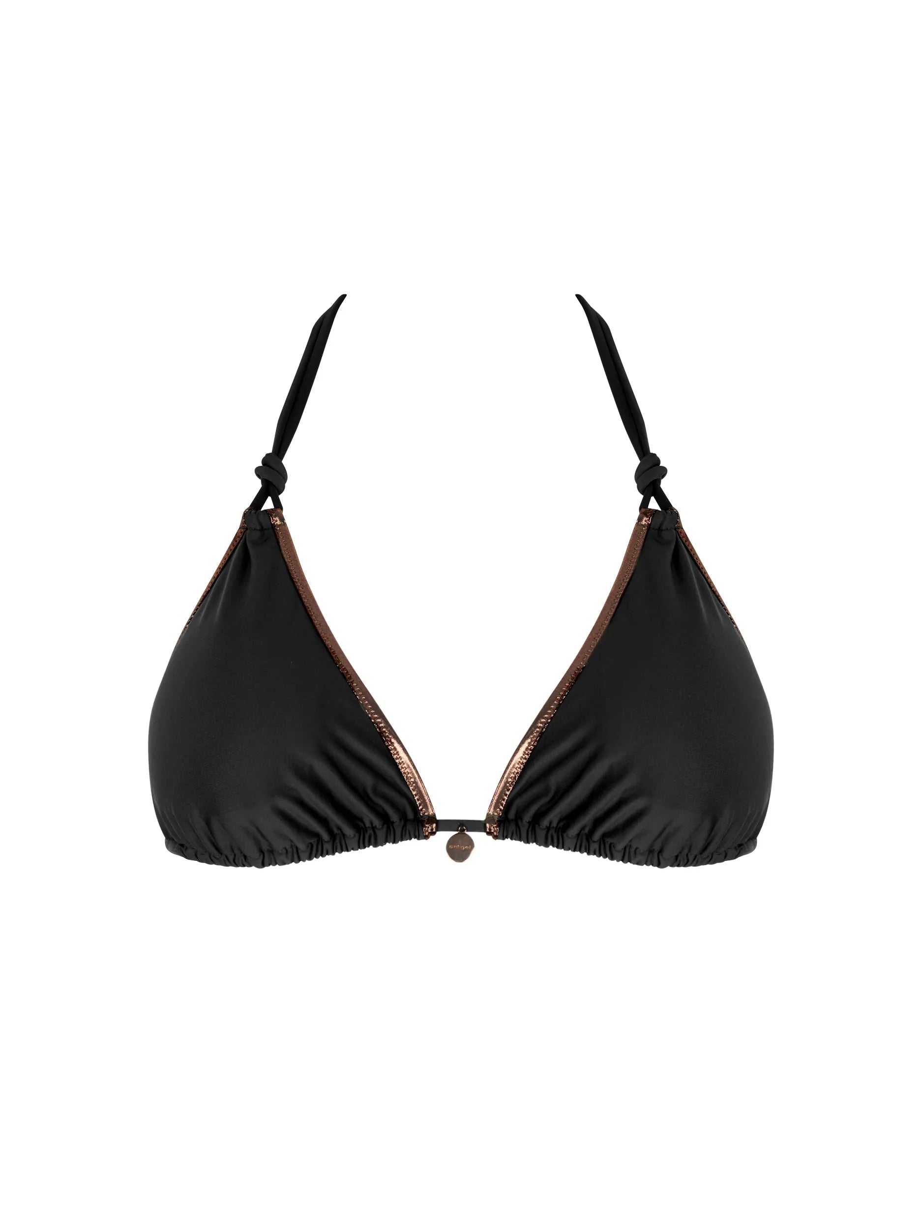 You'll love wearing this triangle bikini top featuring adjustable tie-back and halter neckline for a customized fit. The removable foam pads let you choose your desired coverage, while the underbust drawstring fine-tunes the silhouette.