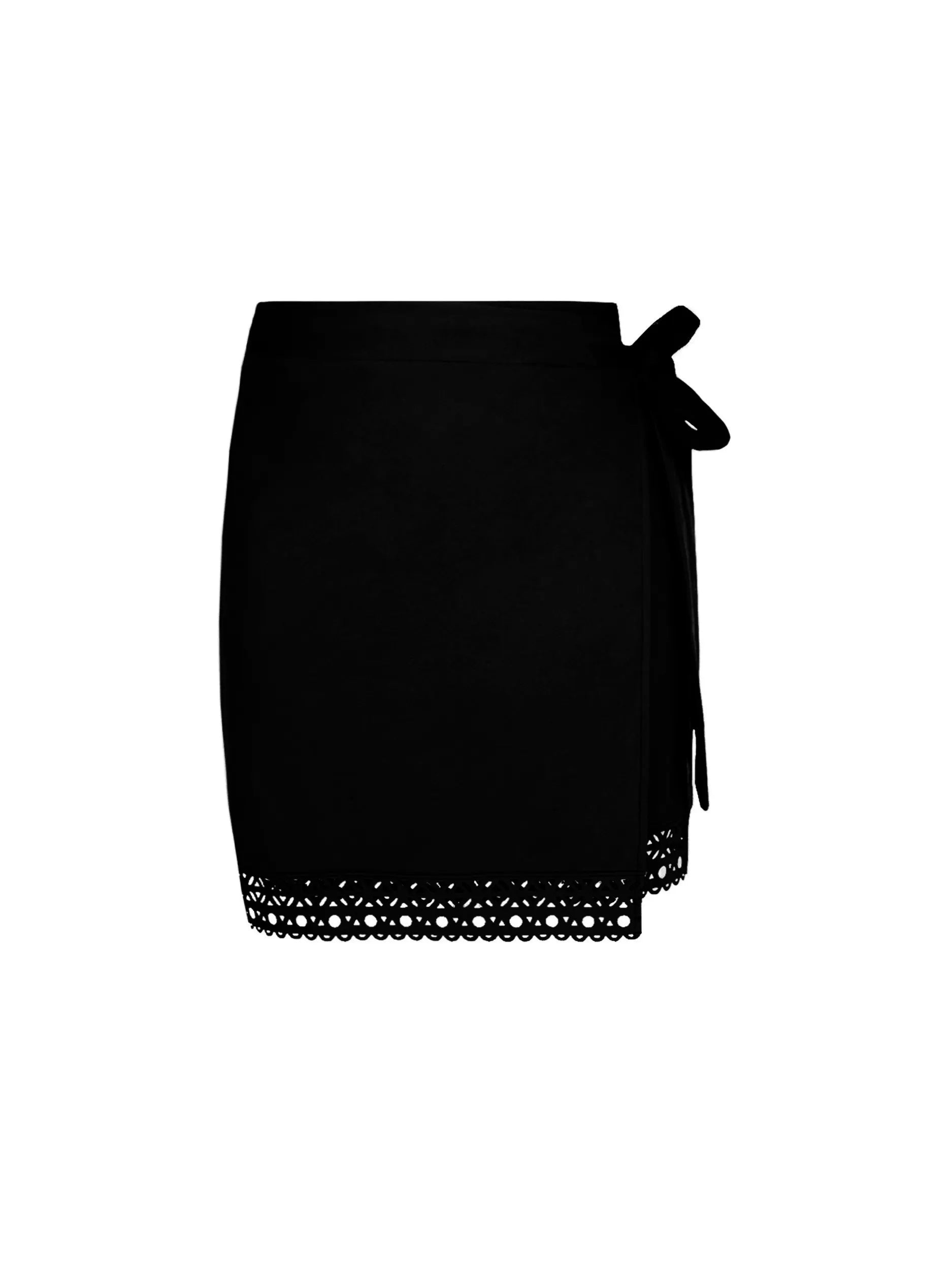 Wraparound sarong adorned with a delicate sheer band at the bottom.