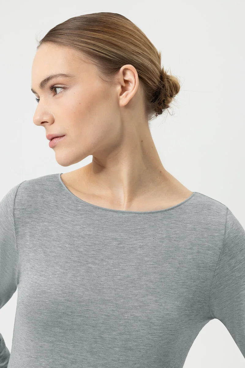 The mey longsleeve in the color Dusty Grey Melange from the Cozy Cashmere collection is an absolute must-have! The Cozy Cashmere offers ultra-thin, simple tops made from super-light single jersey viscose. The cashmere content ensures exceptional comfort. Made from 85% viscose, our longsleeve regulates moisture effectively, offers a pleasant feel, and is easy to wash. Our homewear shirts are Oeko-Tex® Standard 100 certified. By choosing this product, you are consciously supporting certified toxin-free textiles