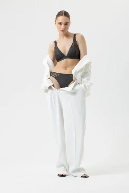 A fantastic must-have is our triangle bra in the color Thunder Grey from the Poetry Temptation collection. For the feeling of being truly special: it accentuates your feminine side and enhances your sensual elegance. The Poetry Temptation collection is a real showstopper. The striking lace in its color combinations makes this lingerie collection truly special. Dreamlike lingerie is created using premium materials, sophisticated designs, and stunning colors that are as unique as you are. Our bras are Oeko-Tex® Standard 100 certified, thereby making a deliberate choice for certified toxin-free textiles.