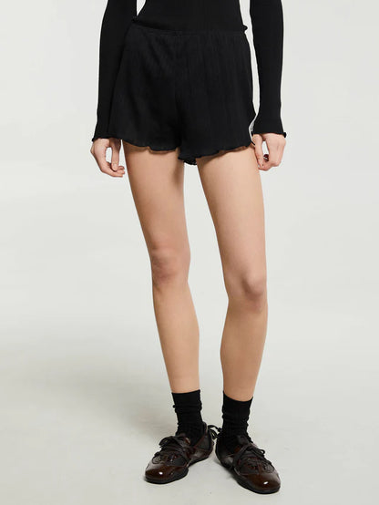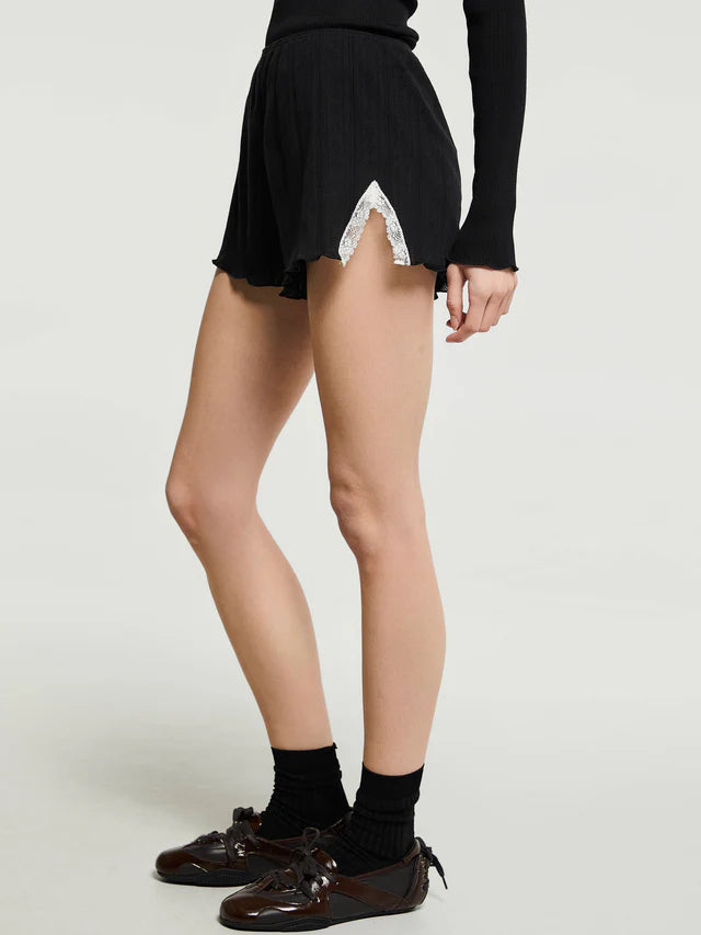 Chic boxers made of a delicate rib knit pointelle cotton featuring a delightful Chantilly lace trim at the leg. Feminine, comfortable and cozy!