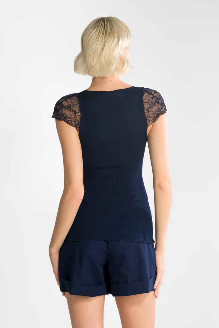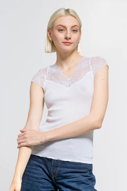 Oscalito Ribbed Cotton and Lace V Neck Tank