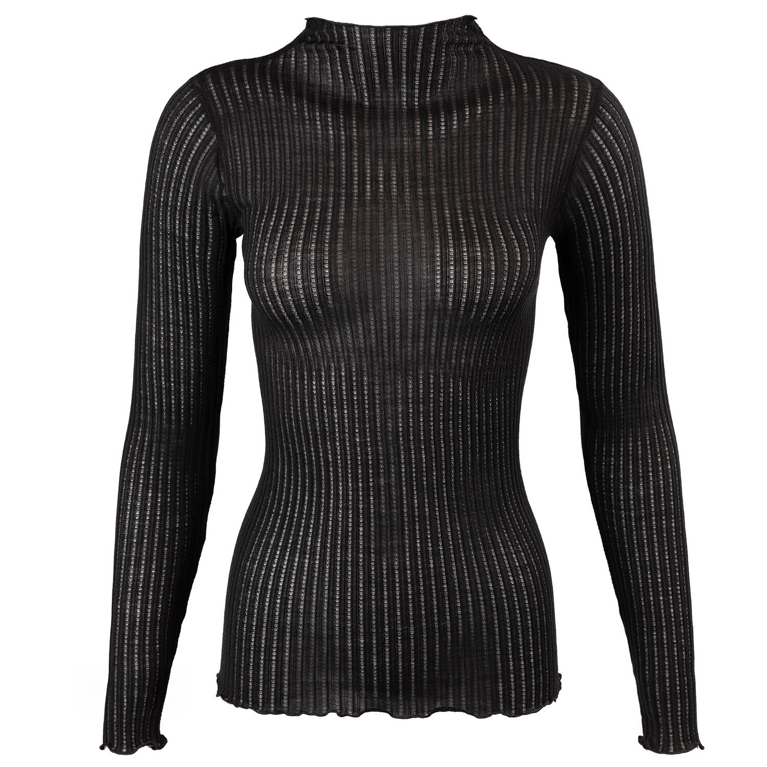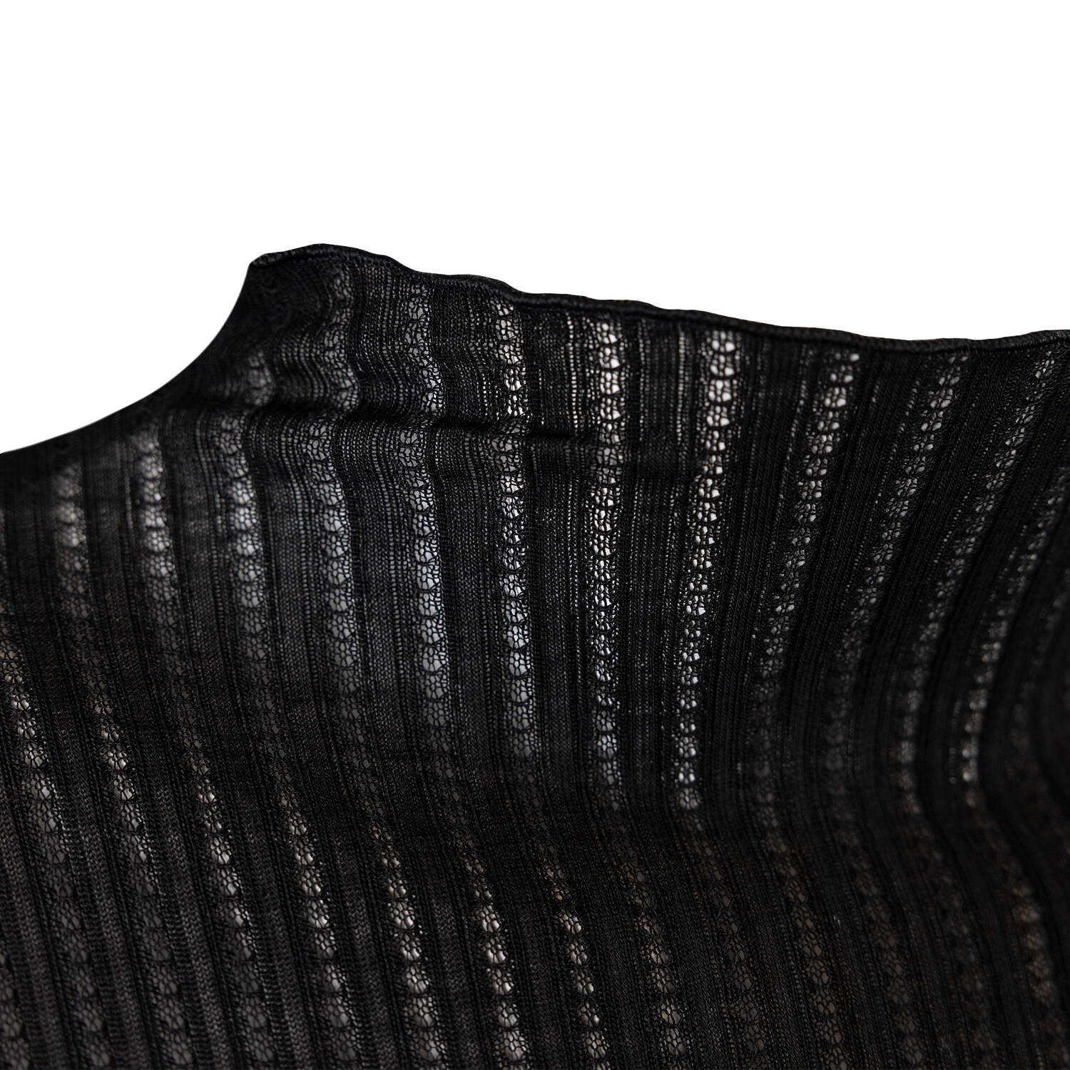 Crafted from a refined blend of extra fine Merino wool and premium silk, the Oscalito Wool and Silk Funnelneck features long sleeves and a mock neck design. Its delicate ajouré rib-knit creates a subtle see-through effect, offering both elegance and breathability.